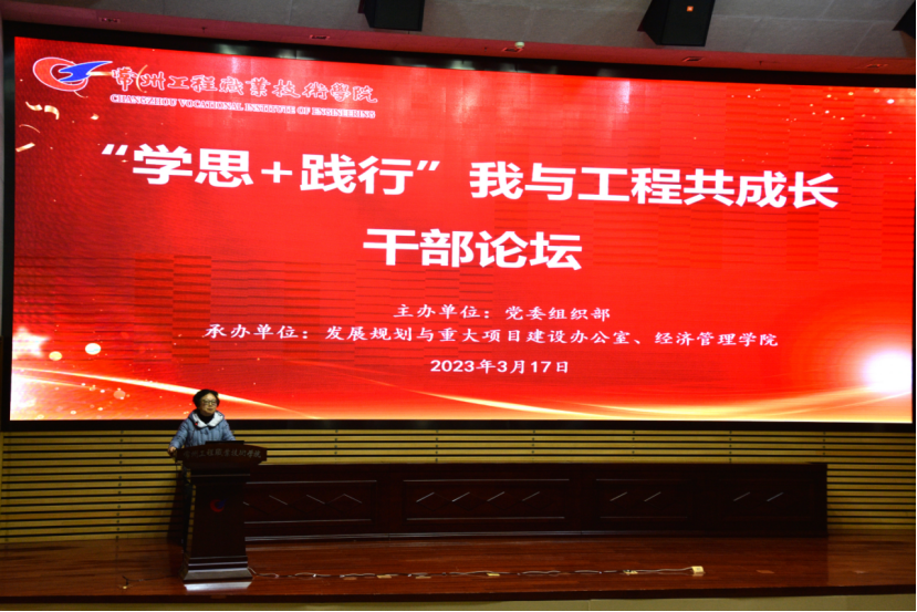 近日,我校第五期“学思+践行”我与工程共成长干部论坛在图文楼一楼报告厅举行。校党委委员,组织部部长蒋小燕及五十余名干部参加论坛。本次论坛由党委组织部主办,发展规划与重大项目建设办公室和经管学院共同承办。论坛由经管学院党总支书记徐标主持。