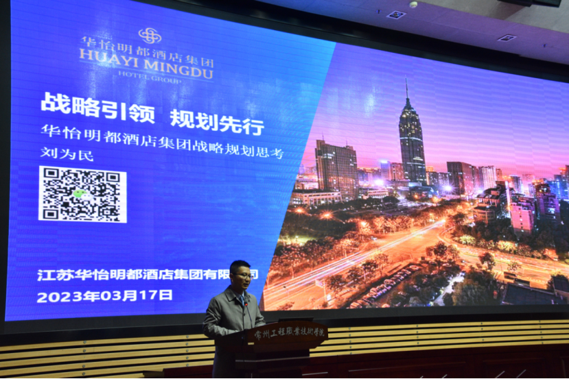 论坛分为专家报告、交流发言和交接仪式等三个环节。江苏华怡明都酒店集团副总裁刘为民以《战略引领 规划先行——华怡明都酒店集团企业战略规划思考》为题作专家报告。他从企业的优化诊断,组织管理,企业战略规划的逻辑思路等方面进行了详细的讲解。