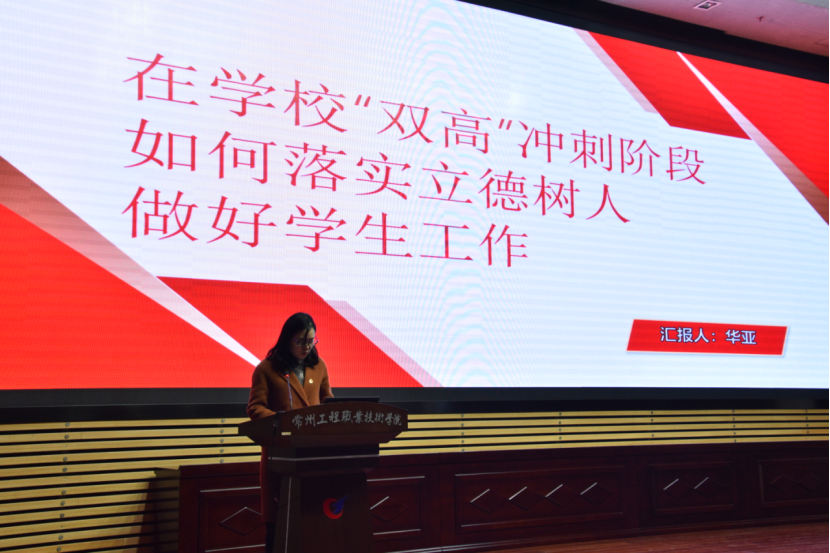 发展规划与重大项目建设办公室副主任刘健和经管学院党总支副书记华亚作主题发言。刘健从课题的选择以及申报书的撰写等两个方面对如何提高课题命中率作了分享。华亚围绕学生工作,从落实立德树人,画好三全育人“同心圆”、聚力服务育人,挖掘就业提质“动力源”、创新育人载体,激发全面发展“活水源”等三个方面作了汇报,表示经管学工队伍将努力加强学生思想政治教育,主动服务学生健康成长和全面发展,以高质量学生工作助力学校“双高”建设。