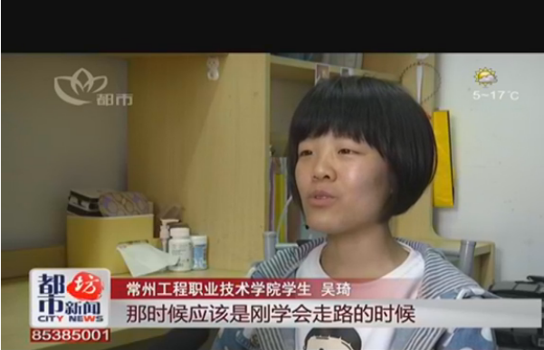 常州电视台《都市新闻坊》对学院吴琦身残志坚的感人事迹进行深度采访、报道。