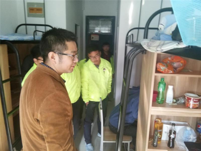 朱老师高度重视宿舍卫生工作,此次重点对大一宿舍卫生状况进行了检查。朱老师着重检查了卫生间地板、宿舍电源、阳台拐角、床铺整洁等卫生状况,嘱咐学生打扫时注意细节问题,讲明宿舍扣分原因。同时,朱老师和蔼的叮嘱学生要勤倒垃圾,勤晾晒衣服、被子,并指出整洁卫生的宿舍环境对学生的生活环境尤为重要。整个活动洋溢着亲切自然的气氛,同学们也极力配合着朱老师和学生干事的检查工作。