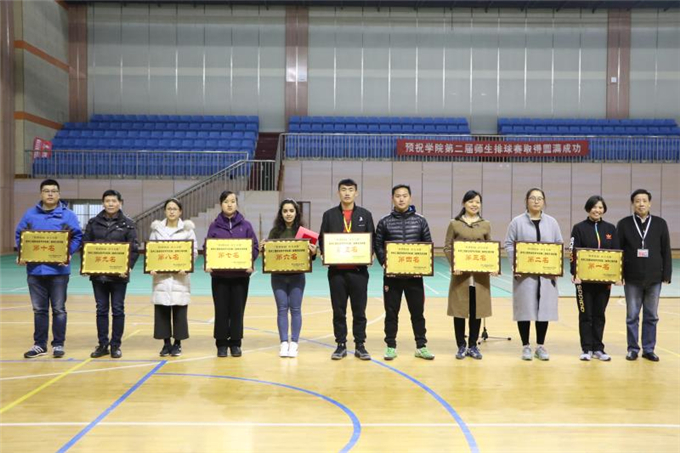 比赛结束后,团委蒋文嵘书记主持了颁奖仪式,欧汉生副书记、施福新书记、学工处张雪华处长、体育部赵洪明副部长分别为获奖代表队颁奖,并为“优秀运动员”颁发了荣誉证书。最后,欧书记发表总结讲话,他说,通过这次比赛,不但使我们看到了全体队员们排球技术日益精湛、师生间配合的默契十足,更让我们看到了全院师生奋发向上、不畏艰难的精神风采;希望全体师生们积极地走下网络、走向操场,以强健的体魄和饱满的精神状态去迎接新的挑战。