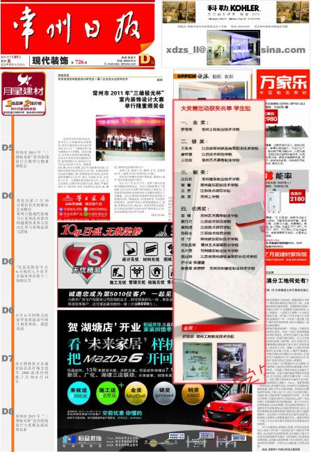 我院学生获常州市2011年“三雄极光杯”室内装饰设计大赛金奖(《常州日报》2011-7-27 D版)
