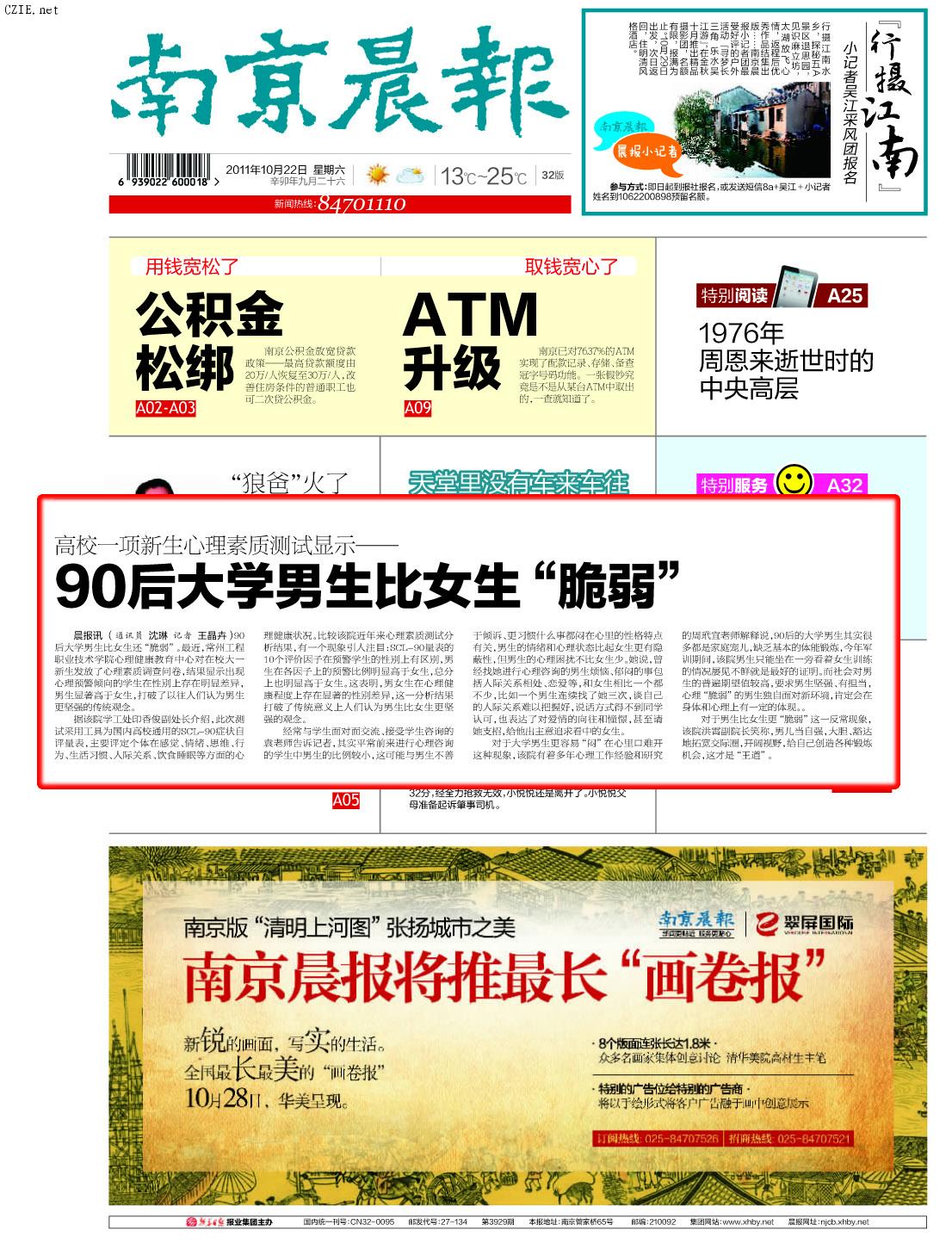 晨报讯(通讯员 沈琳 记者 王晶卉)90后大学男生比女生还“脆弱”。最近,常州工程职业技术学院心理健康教育中心对在校大一新生发放了心理素质调查问卷,结果显示出现心理预警倾向的学生在性别上存在明显差异,男生显著高于女生,打破了以往人们认为男生更坚强的传统观念。
