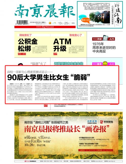 高校一项新生心理素质测试显示—— 90后大学男生比女生“脆弱”