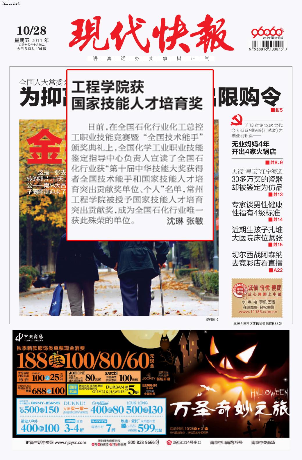 日前,在全国石化行业化工总控工职业技能竞赛暨“全国技术能手”颁奖典礼上,全国化学工业职业技能鉴定指导中心负责人宣读了全国石化行业获“第十届中华技能大奖获得者全国技术能手和国家技能人才培育突出贡献奖单位、个人”名单,常州工程学院被授予国家技能人才培育突出贡献奖,成为全国石化行业唯一获此殊荣的单位。(沈琳 张敏)