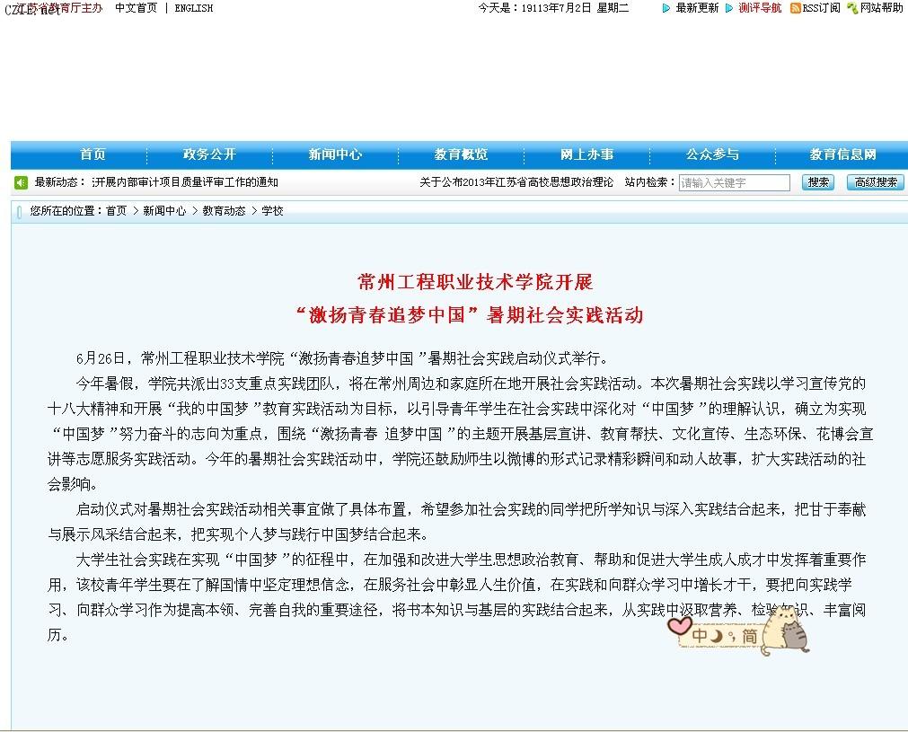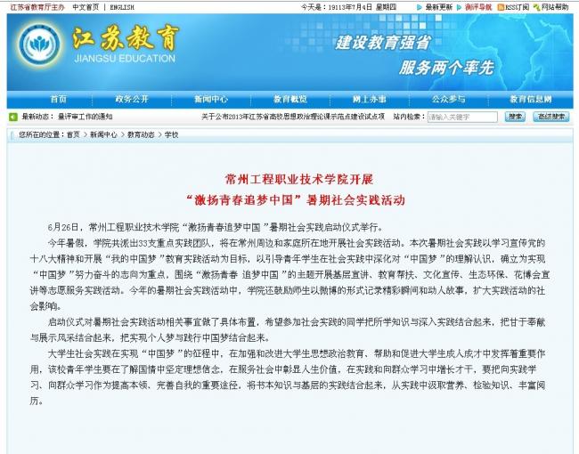 常州工程职业技术学院开展“激扬青春追梦中国”暑期社会实践活动
