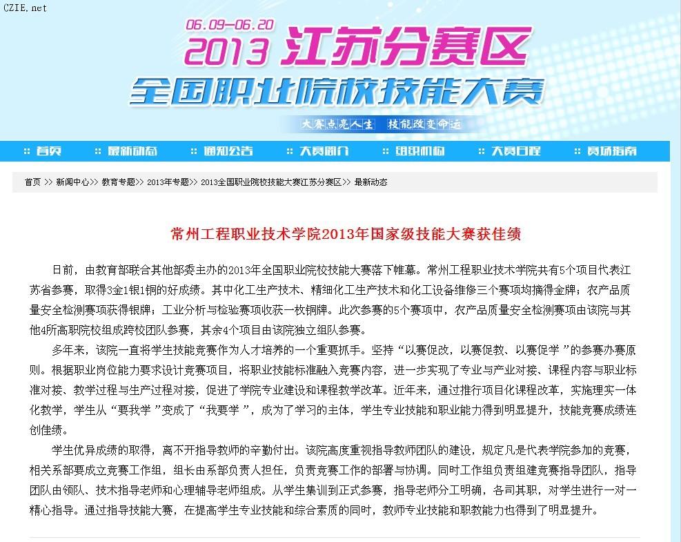 常州工程职业技术学院2013年国家级技能大赛获佳绩