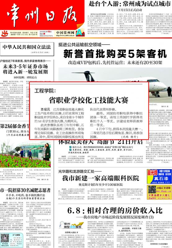 《常州日报》:工程学院:省职业学校化工技能大赛