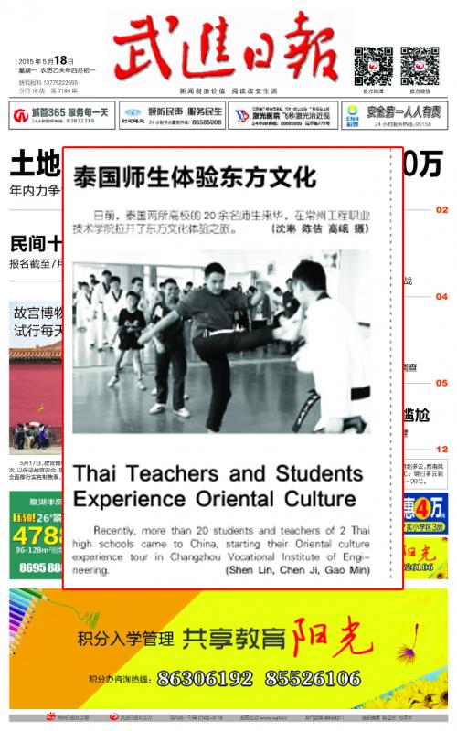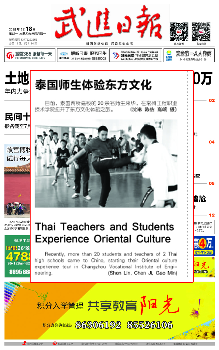 《武进日报》:泰国师生体验东方文化(2015-5-18)