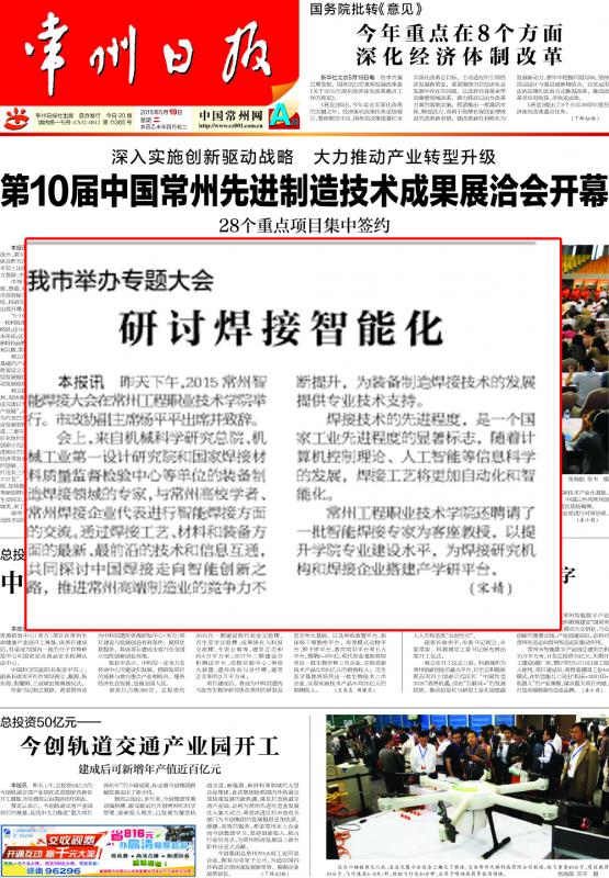 《常州日报》:我市举办专题大会研讨焊接智能化(2015-5-19)
