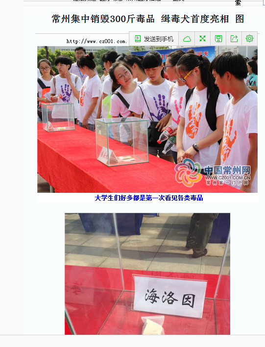 活动现场通过毒品展示、海报宣传等方式,教育学生远离毒品、珍爱生命。科教城上千名大学生参加了活动。纪念活动结束后,由4年来查获的150公斤毒品被特警现场封存,后武装押运至常州新北某化工厂进行无害化销毁。